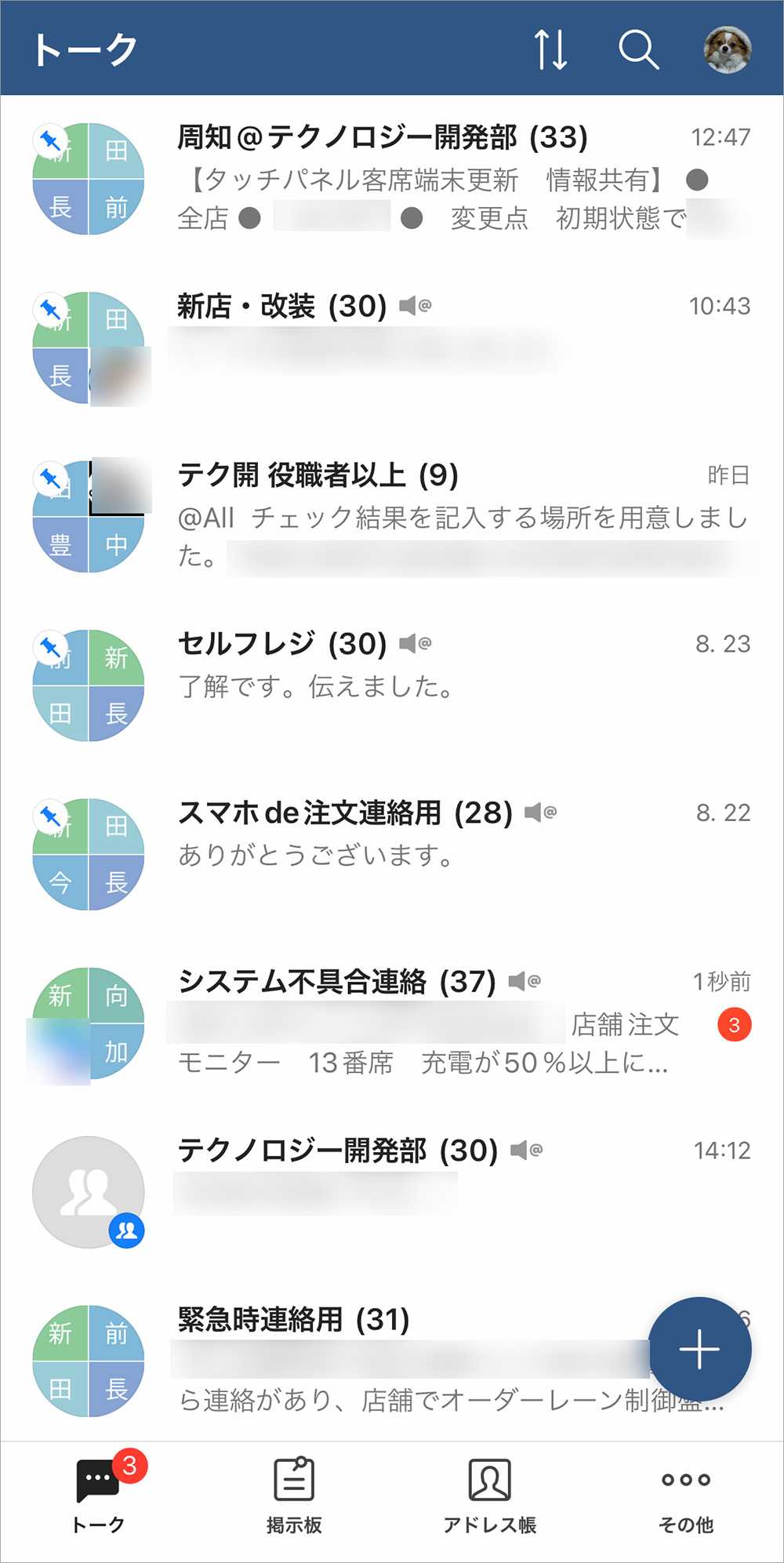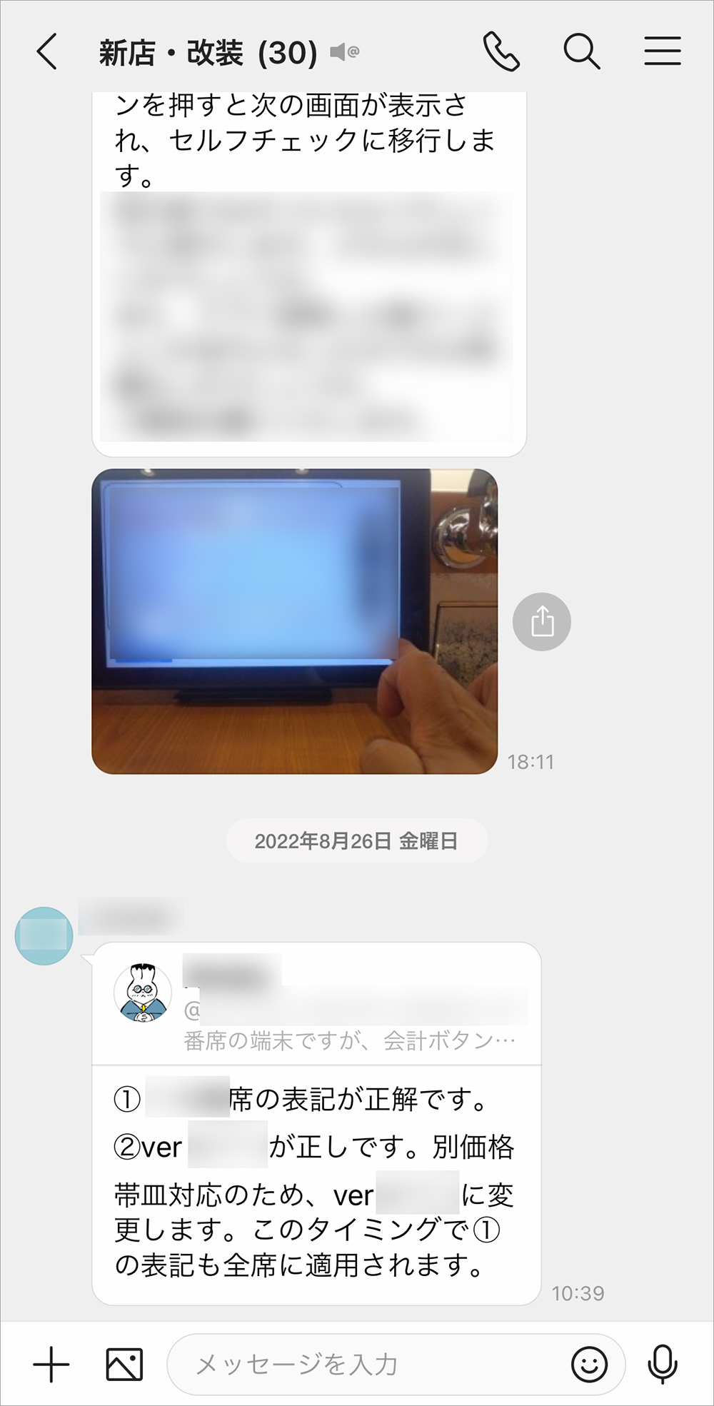 営業部には店舗の設備やシステムに不具合が発生した際の相談を受ける担当者がおり、トラブルが起こった際のヒアリングや、担当者からDXソリューション部へのエスカレーションも全て電話で行うため時間がかかっていました。「LINE WORKS」導入後、店長や責任者からの報告が担当者を介して担当部門にトークで伝えられる仕組みを構築。「タッチパネル」「セルフレジ」など設備別のグループを作成し、各設備の担当者に速やかに情報が共有されるようになりました。複雑な障害の場合などは担当者がビデオ通話で不具合箇所を映してもらいながら確認することで、より迅速かつ的確な対応が可能になっています。