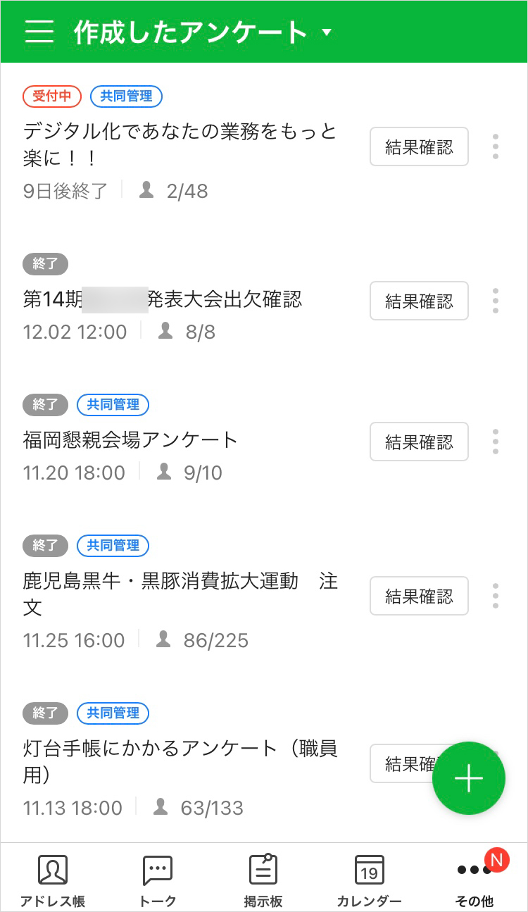 ■研修の出欠席や農産物の注文などの配布・回収がアンケート機能で簡便に