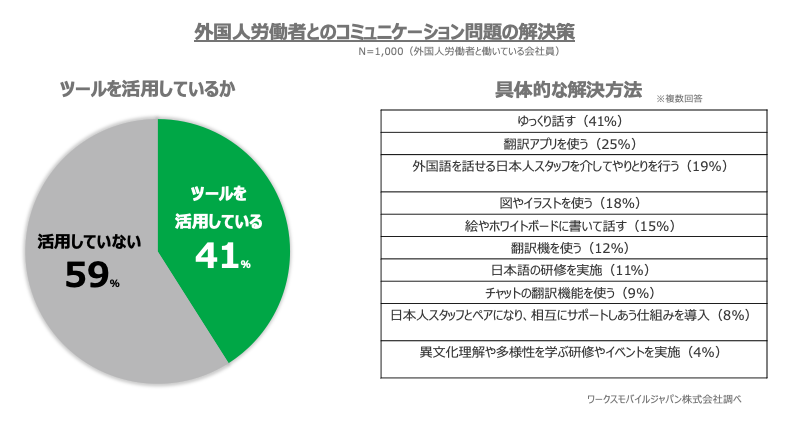 ビジネス現場のコミュニケーションツール「LINE WORKS」を提供するワークスモバイルジャパン株式会社(本社:東京都渋谷区、代表取締役社長:増田隆一、以下 ワークスモバイルジャパン)は、外国人労働者と同じ職場で働いたことがあり、直接業務上のやり取りをしたことがある会社員1,000人を対象に、「外国人労働者とのコミュニケーション実態」に関する調査を実施いたしました。