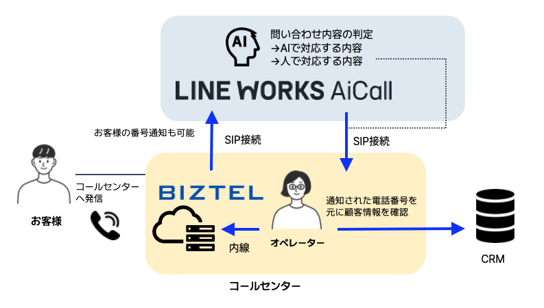 ビジネス現場のコミュニケーションツール「LINE WORKS」や各種AI製品を提供するLINE WORKS株式会社(本社:東京都渋谷区、代表取締役社長:島岡 岳史)は、人の対応に近い自然な対話応答を行う電話応対AIサービス「LINE WORKS AiCall」と、株式会社リンク(本社:東京都港区、代表取締役社長:岡田 元治、以下 リンク)が提供するコールセンターシステム「BIZTEL(ビズテル) 」が連携を開始したことをお知らせいたします。