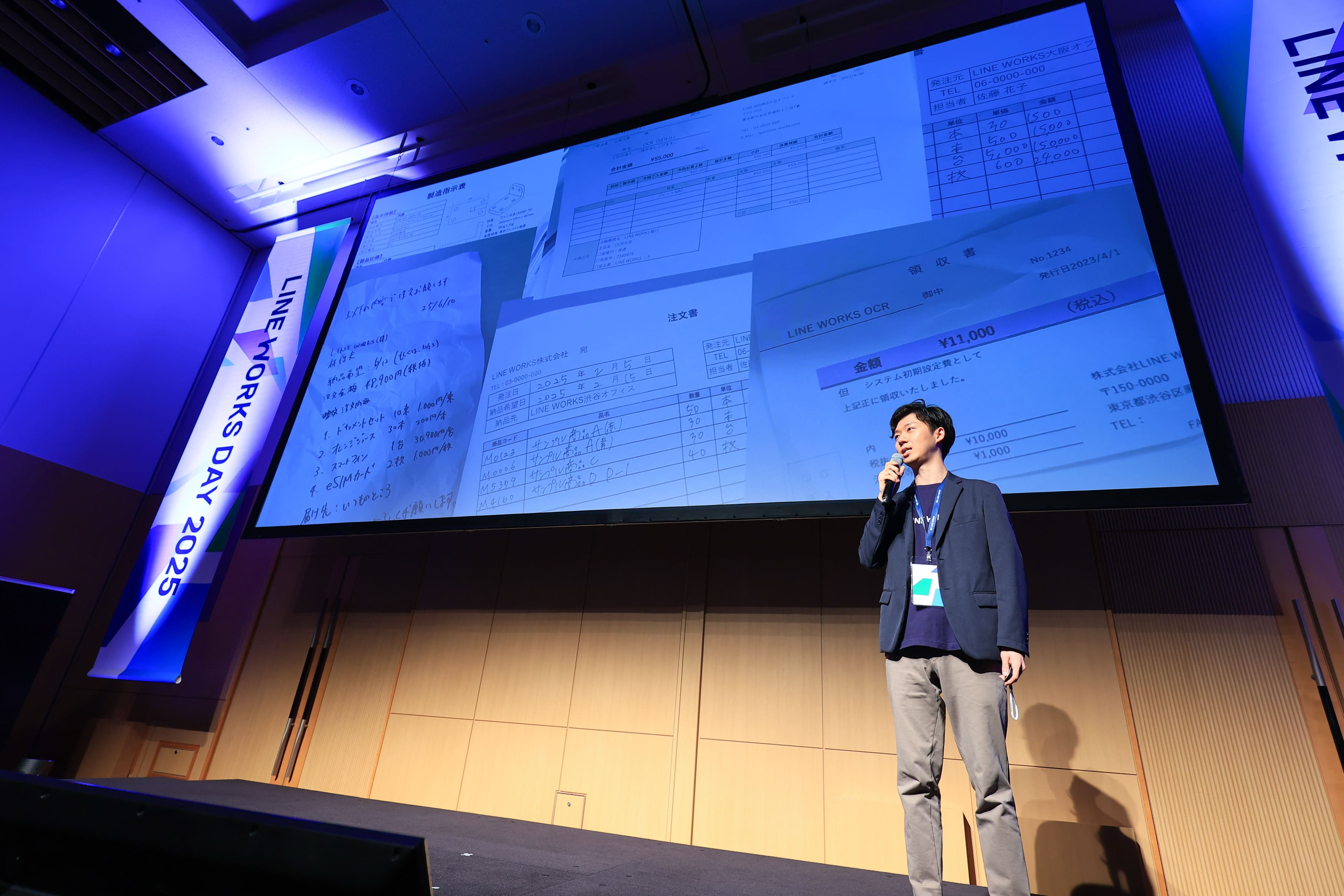大竹は、誰でもいつでも見られる紙は便利である一方、移動や保管、複数での閲覧などを考えると運用を見直す必要があるのではないかと提言。”紙の価値を壊さず、解放する新製品”として「LINE WORKS PaperOn」を発表しました。OCR技術を活用した「LINE WORKS PaperOn」を利用することで、1枚の注文書にかかる時間を削減し200時間から45時間まで作業時間を短縮した事例を紹介。「LINE WORKS」とも連携する本サービスは今年秋に提供開始を予定しています。ペーパーレスやフルデジタルを否定するのではなく、ビジネスの現場に新しい選択肢を増やすという姿勢を強調しました。
