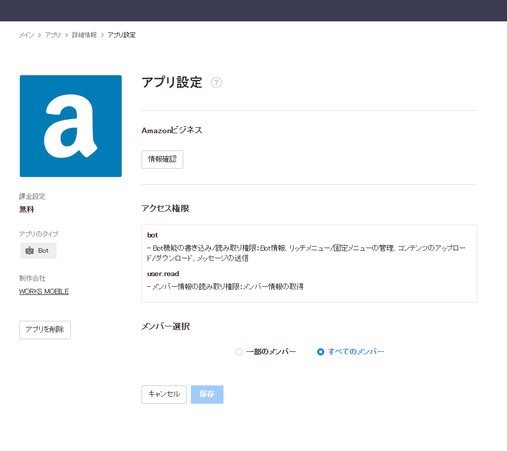5. アプリ設定ページが表示されバージョンアップ作業は完了。ページを閉じます。