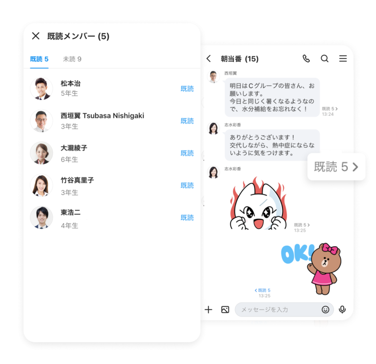 トーク(チャット)で既読の確認をすれば、個別対応は未読者のみとなり、効率的です。