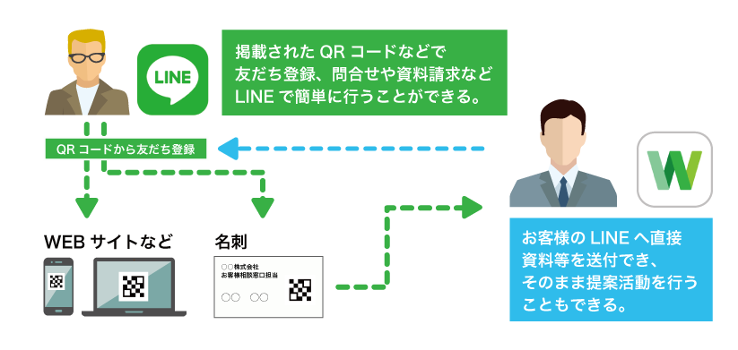 LINE WORKSはLINEを使っている顧客とつながることができます。