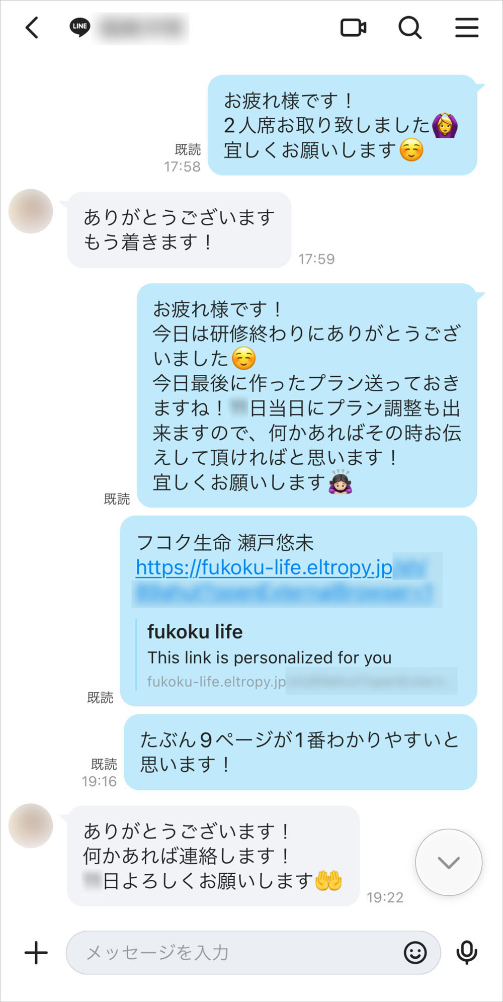 對於初次見面的客戶,我們會先說明此方式在安全性上的保障,再請對方掃描印在名片上、或貼在識別證背面的 QR Code 來加入好友。自從與客戶的 LINE 連結後,不再出現因為電話時機不合而無法聯繫的困擾,透過聊天提醒商談的安排變得更可靠,也能更方便地發送營業所舉辦活動等的邀請訊息。