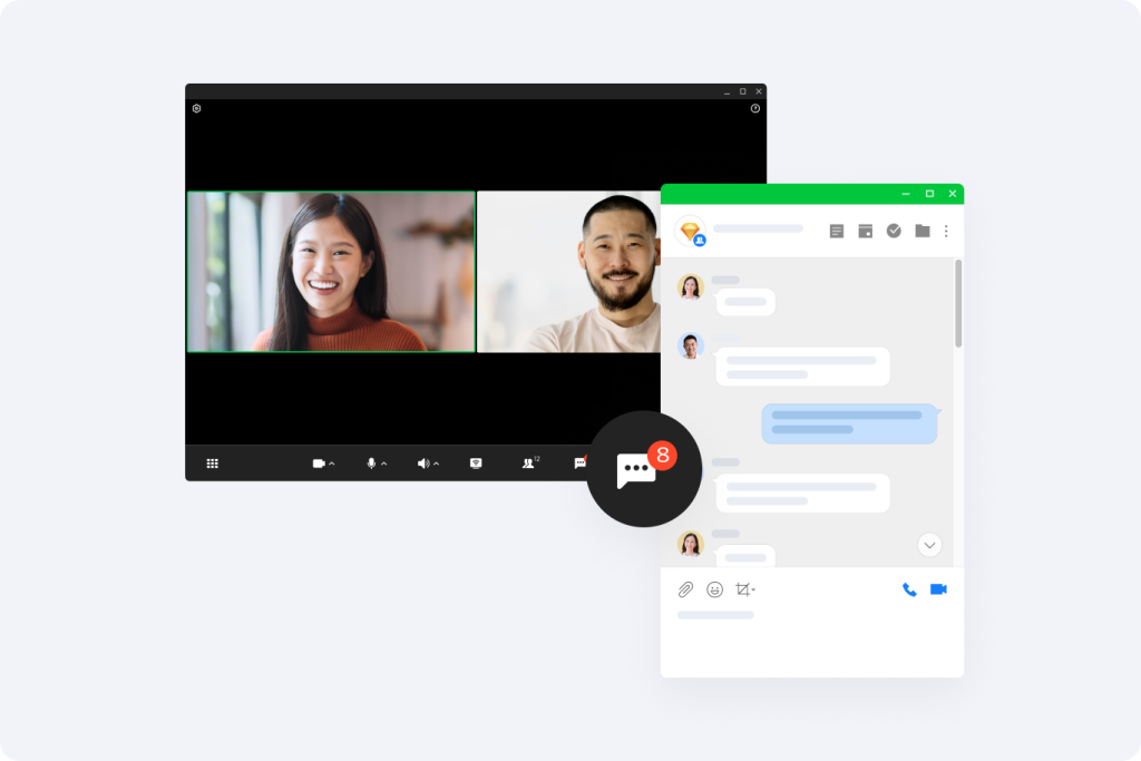 參與語音或視訊會議時,系統會自動開啟專屬聊天室,方便您即時分享會議所需的檔案或傳送訊息,讓溝通更順暢、工作更有效率。