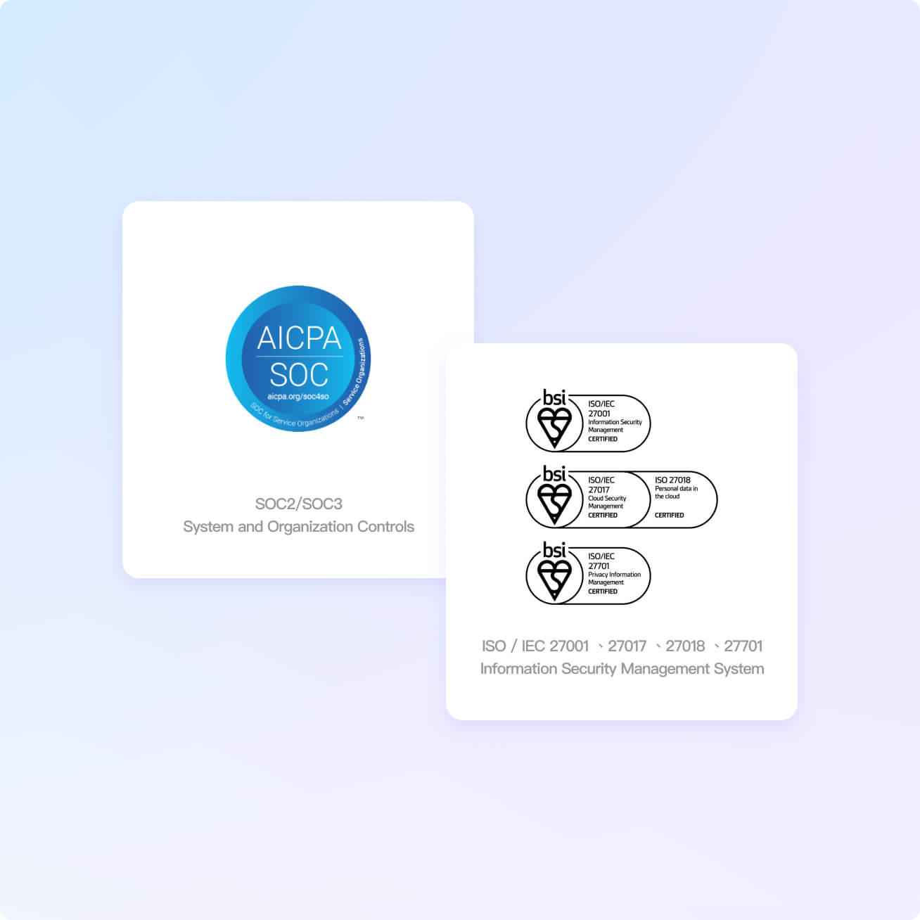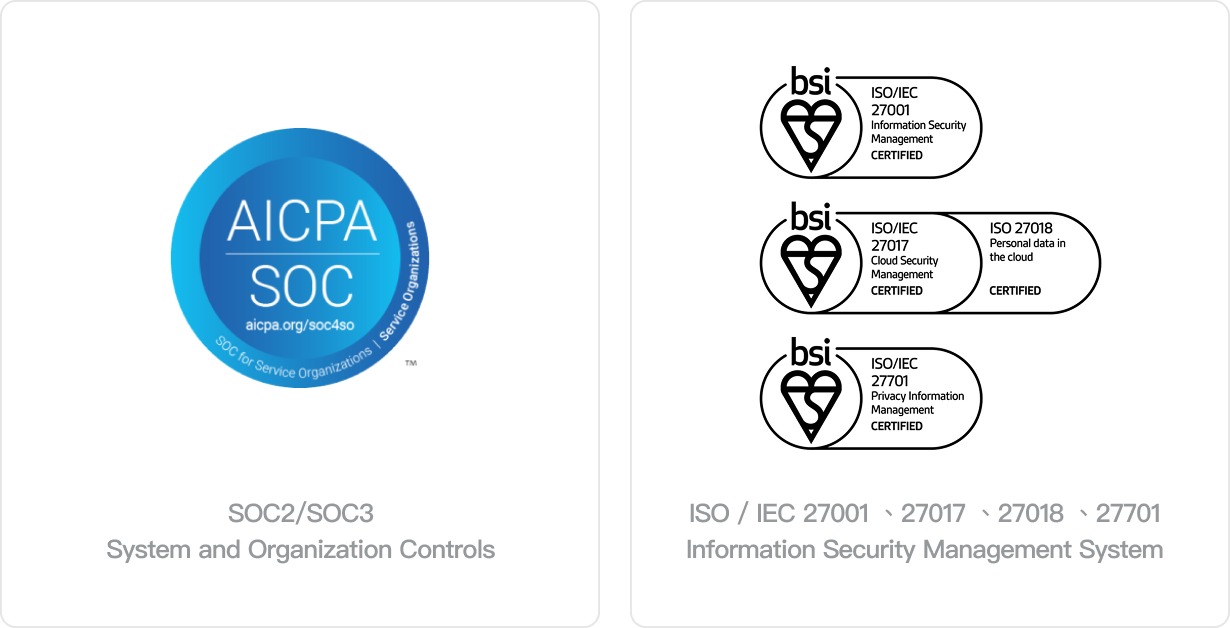LINE WORKS的所有資料皆由專業資安團隊24小時全年無休監控,嚴密管理資料安全。同時,透過國際認證的高等級資安防護,有效抵禦各類外部威脅。