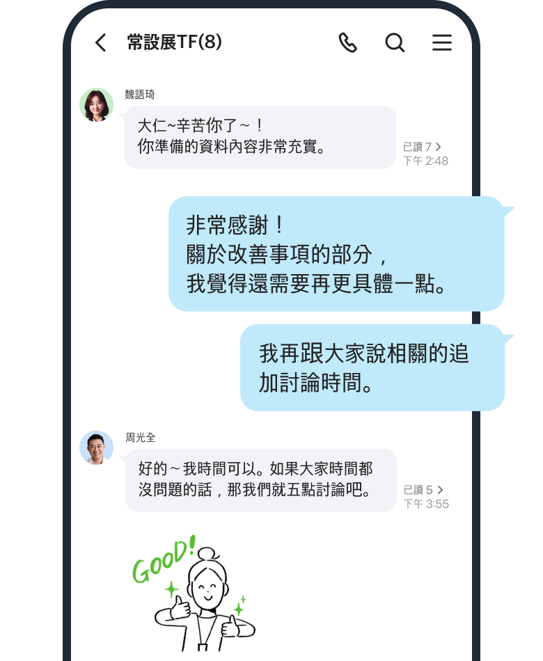就像使用LINE一樣簡單,從導入的第一天開始,任何人都能輕鬆上手!