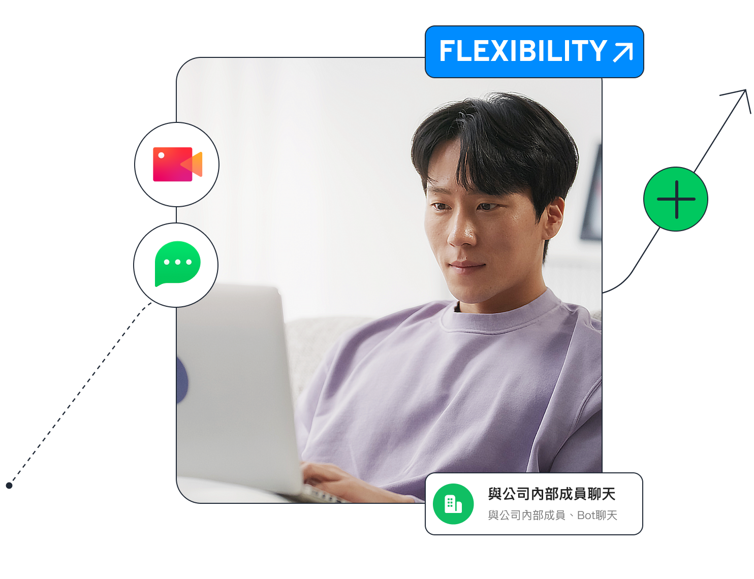 使用LINE WORKS讓您不必依賴特定設備,無論在電腦或智慧型手機上,