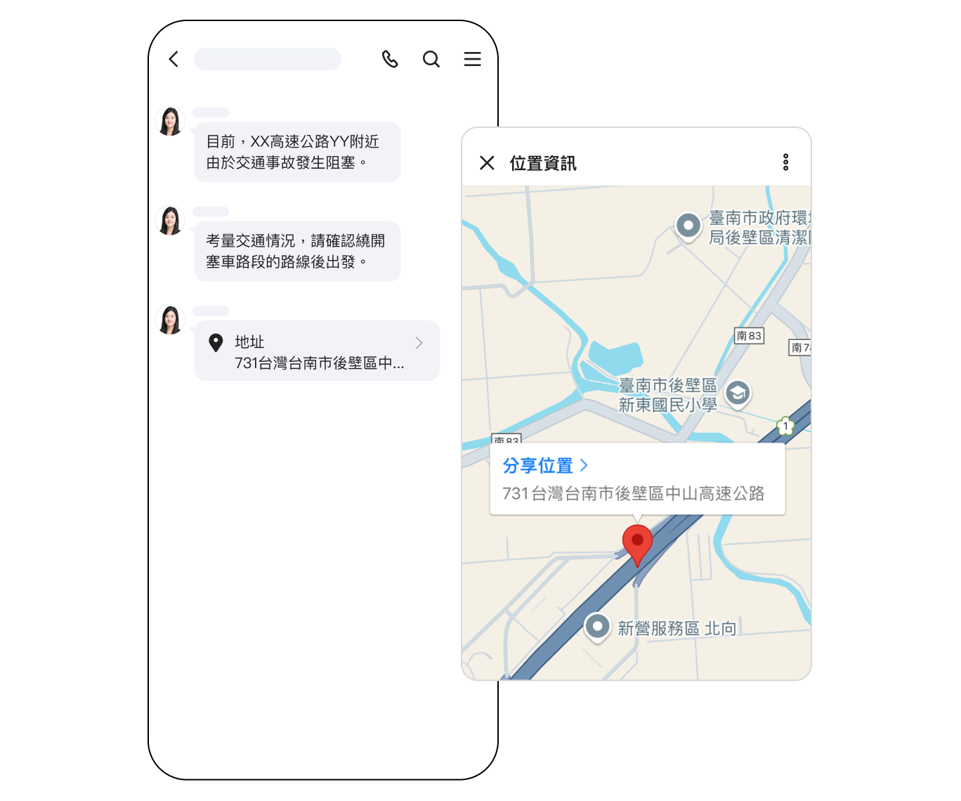 透過分享定位資訊可以一目了然掌握司機的位置及在哪裡遇到困難。