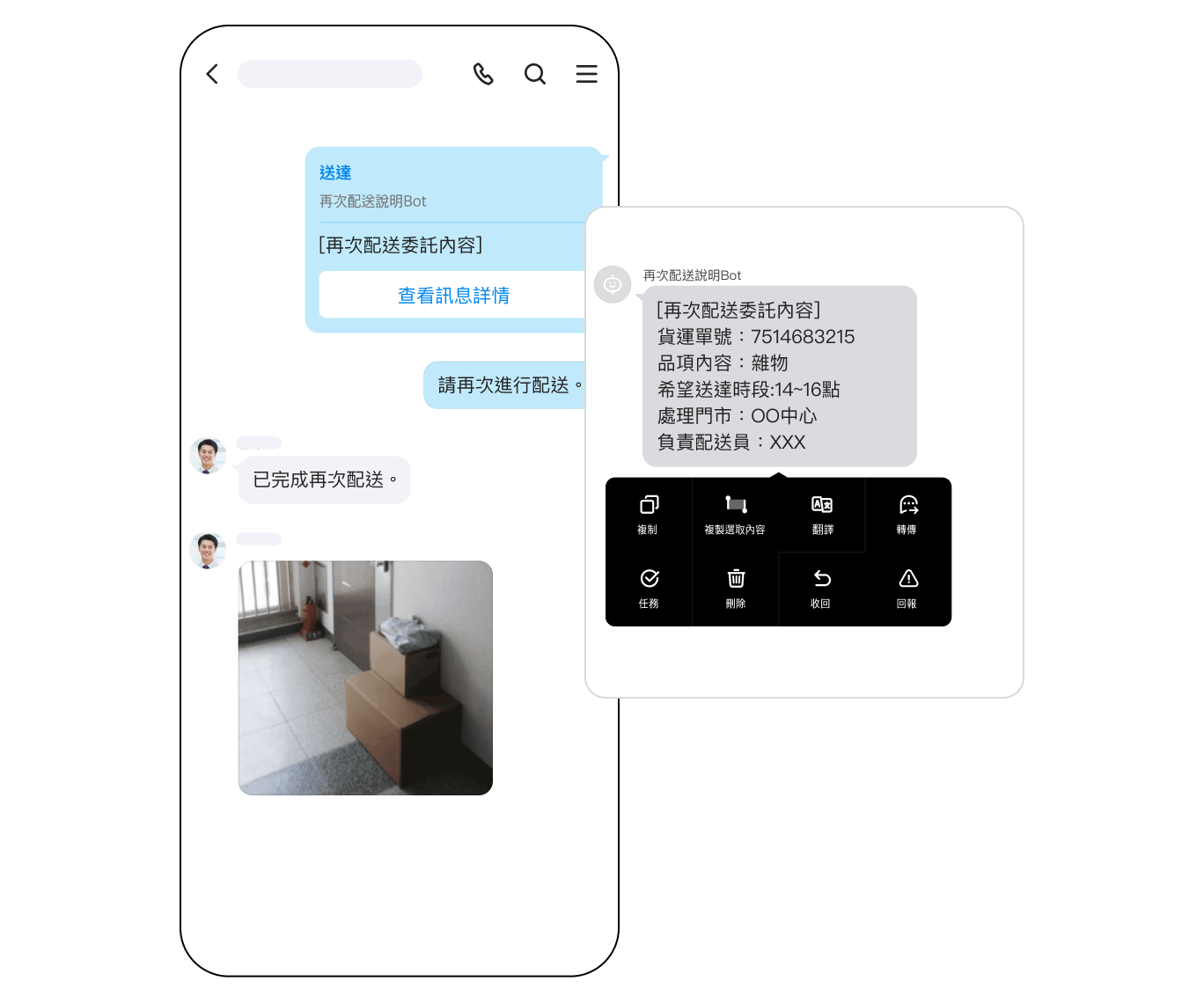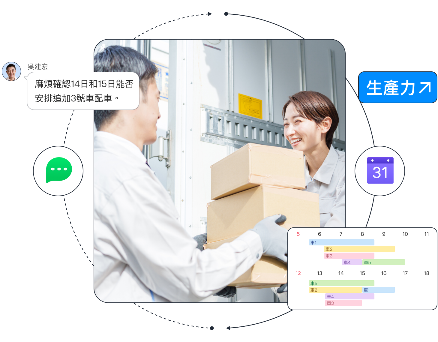可在LINE WORKS通訊錄中登錄所有相關人員,包括物流中心的工作人員和司機,
