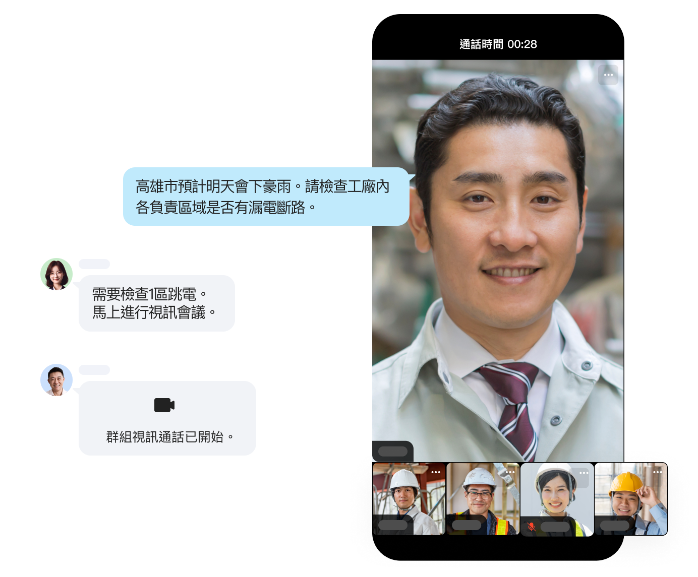 透過LINE WORKS即時溝通快速解決不可預測的現場問題。