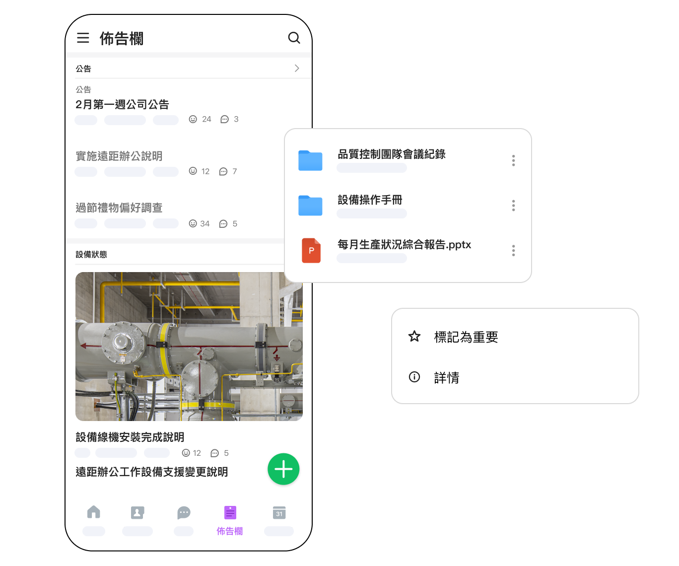 在Drive和佈告欄上分享並搜尋需要的現場資料。
