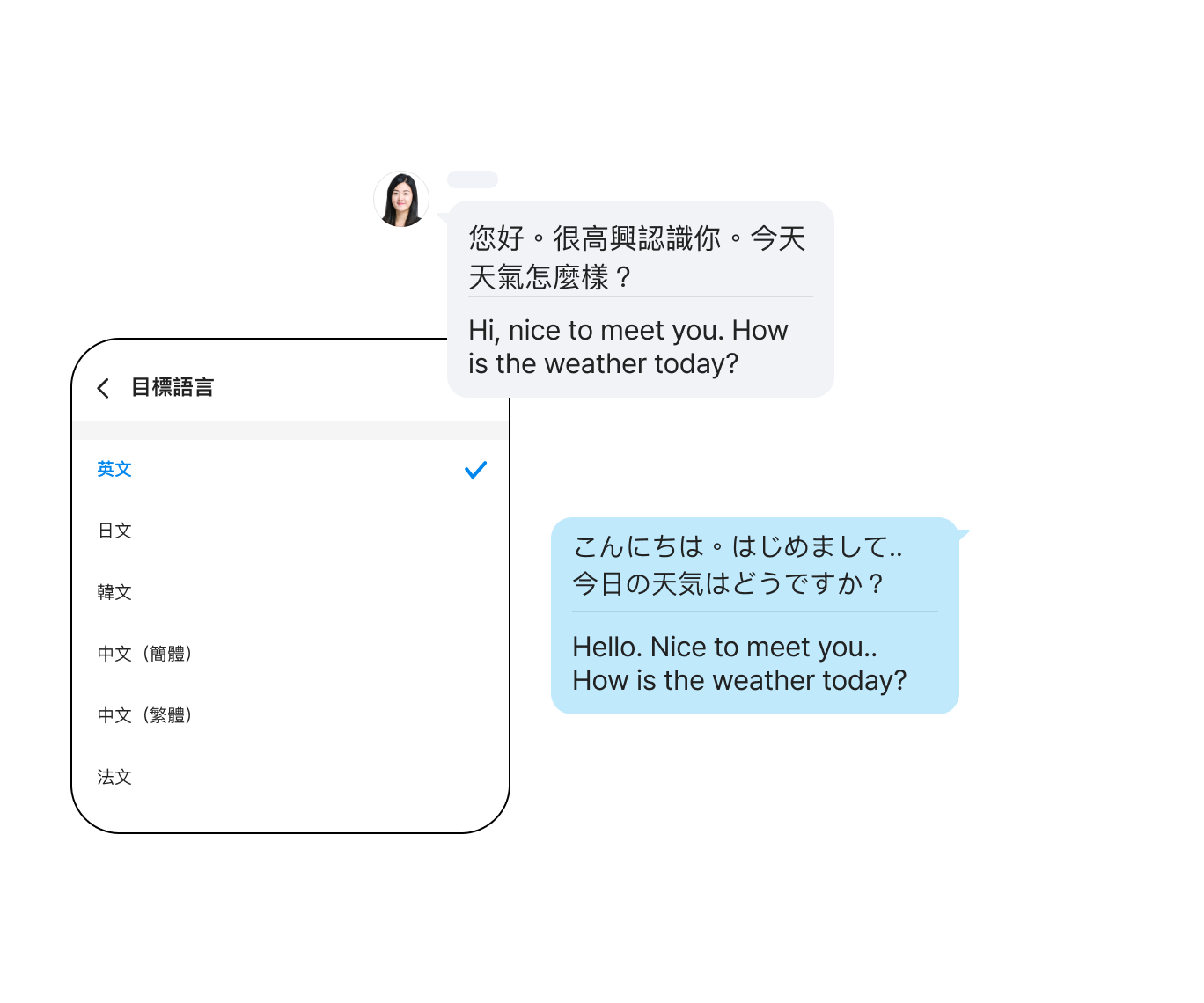 即時自動翻譯,讓您像當地人一樣自然交談。